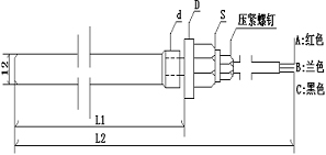 4、例如WZC-200-2:表示Cu50傳感器,螺紋G1/2,插入深度150mm長,總長550mm。直徑12mm